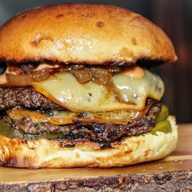 Two fresh patties with a splash of Worcestershire sauce, smashed and seared on the grill for deep, rich flavor. Served on a toasted brioche bun with pickles, smoked gouda cheese, sautéed onions, and finished with our signature house sauce. Everything that brings out that bold, unforgettable Wagyu flavor — made fresh to order.